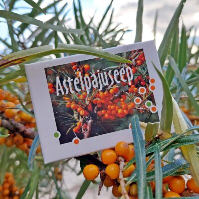 Käsitööna valminud rikkalikult niisutav ja õrnalt kooriv seep. Purustatud astelpajumarjad annavad nahale vitamiine, magusmandli õli ja kakaovõi pakuvad pehmust ning lavendel kingib meeldiva rahustava aroomi.